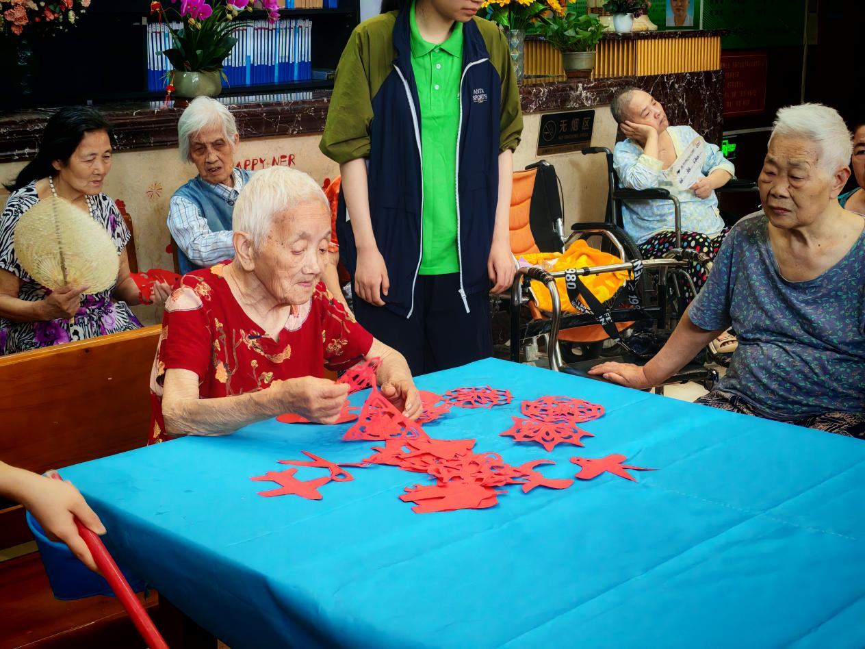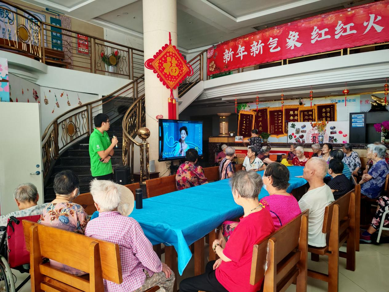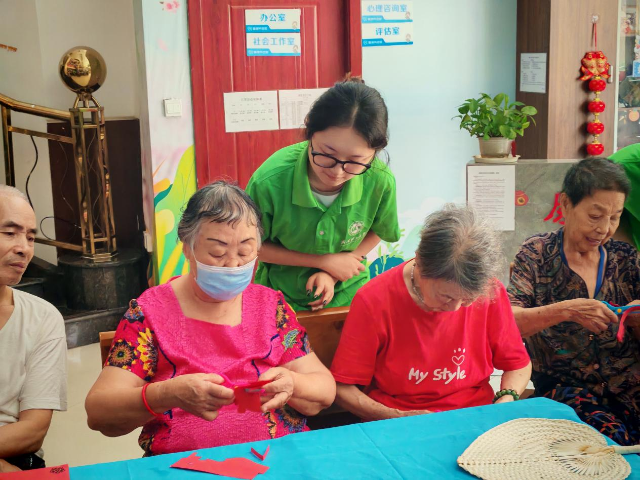 为弘扬中华民族尊老敬老传统美德,丰富老年人精神文化生活,7月7日,国产视频-成人在线-91在线 青年志愿者协会非遗敬老志愿服务暑期社会实践队的志愿者走进武汉市洪山区康德养老院,开展非遗敬老志愿服务活动。活动通过黄梅戏展演、非遗剪纸等传统文化形式,为老人们送去温暖与欢乐。