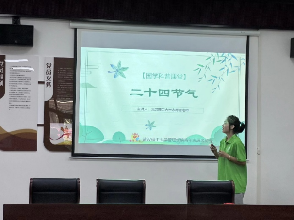 活动首堂课由李颖同学主讲《二十四节气》。她系统介绍了节气划分的起源及其与传统农耕文明的深刻联系,将雨水滋养万物、惊蛰唤醒生机、大暑蕴含智慧等知识融入生动讲解。
