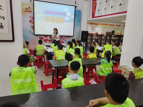 开班仪式上,各社区负责人率先与大家见面。负责人介绍,志愿者涵盖高校学子、专业教师及社会爱心人士,将在各社区托管点同步开展服务,尤其关注新兴领域群体家庭的需求。“许多家长忙于奔波,暑期孩子看护是心头事,我们希望通过托管班,让他们能安心工作,让孩子们在熟悉的社区里有人管、有人教、有人陪。”志愿者们的话语道出了服务的初心。在各社区托管点,孩子们或大方分享爱好,“我喜欢打篮球,想找小伙伴组队”;或轻声诉说期待,“希望暑假能多看书、学画画”。其中,不少来自新兴领域群体家庭的孩子也主动参与,“我爸爸是外卖员,他说暑假我在这里,他送单更安心”,简单的表达里满是对陪伴的渴望,也让志愿者们更明晰服务的意义。随后,志愿者老师用生动的语言讲解托管班的共同规则。从出勤时间、课堂秩序到课间安全、互助友爱,老师们通过互动问答引导孩子们能够理解“这些约定是为了让每个小朋友都能安全、开心地度过每一天。”孩子们认真倾听,纷纷点头,一场关于“规则与尊重”的启蒙悄然完成。