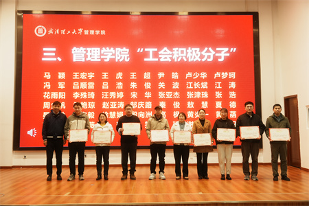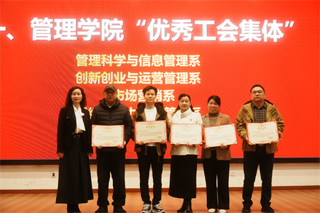 颁奖仪式上,陈晓芳院长为管理科学与信息管理系团队、创新创业与运营管理系团队、市场营销系团队、组织与人力资源系团队以及国产视频 篮球队颁发国产视频 “优秀工会集体奖”;为王庆国老师、方明老师、牟仁艳老师、吴小艳老师、袁付礼老师和阿克达老师颁发国产视频 “优秀工会干部奖”。