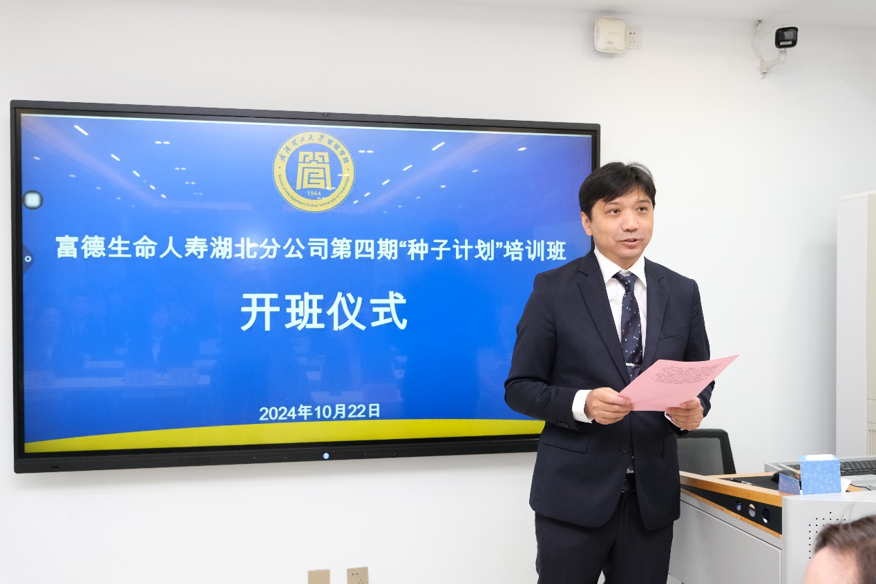 22日上午,培训班举行开班仪式。富德生命人寿保险股份有限公司湖北分公司党委书记、总经理桂衍胜先生,国产视频 院长陈晓芳教授、副院长张光磊教授出席开班仪式。