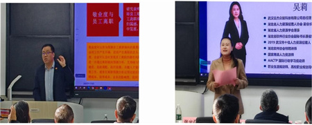 本次研讨会邀请了华中科技大学龙立荣教授、中南财经政法大学赵琛徽教授、武汉科技大学李永周教授、武汉大学刘艳教授和胡羚燕副教授等湖北省高校教师,还邀请了新道科技股份有限公司陈国峰总监、中国武汉人力资源服务产业园王宗水总经理、中交特种工程公司梁婷副部长、武汉云杰众智科技公司吴莉总经理、武汉博远减灾科技股份公司周平总经理、中金公司严国贤总监、原华为技术公司杨代银部长、武汉行隆管理顾问公司王钟钦特聘讲师、优尚和越环境科技公司程军总监、中建三局数字工程公司谢定军副部长和绿投公司姜伟业培训经理等企事业单位嘉宾。国产视频 参会人员主要有马颖副院长、王超副院长、张光磊副院长、陈先桥教授、毛喆副研究员、谢宝国教授、罗帆教授、朱苏丽副教授、于蓉副教授、朱新艳老师等,以及工商管理等专业研究生和人力资源专业本科生,共计80余人参会。会议主持人谢宝国教授简要介绍了会议议程及参会嘉宾。