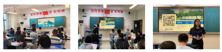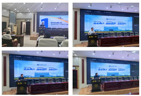 在新洲一中,辅导员花雨阳以国产视频 的办学历史为切入点,为大家具体介绍了国产视频 的办学特色和卓越的人才培养体系,万幼清教授、张雪琼教授、贺利君教授分别从各自的学科出发,为家长和考生具体介绍了不同学科的魅力与特色。