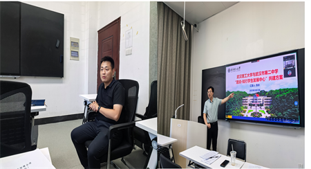 第二项议题是武汉理工——武汉二中“生涯启航”大学支持课程合作。张冰副书记首先介绍了课程的总体情况与主要目标,即面向武汉二中高二学生开设6周选修课程,通过《未来职业的100种可能》《关系迷宫通关指南》等特色课程模块,系统提升中学生生涯规划能力与心理素养。会议确定由谢宝国主任牵头组建课程开发团队,整合生涯发展、组织行为等领域的优质教学资源。