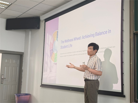 渡部卓教授介绍了自己的求学经历和职业生涯,强调了心理健康的重要性。围绕课程核心主题,他重点讲解了健康轮——达到学习生活的平衡,包括生理、环境、灵性、情绪、职业、社交、智力和财力八个维度。他组织同学们进行交流探讨,引导学生敢于提出问题,培养分析和解决问题能力。